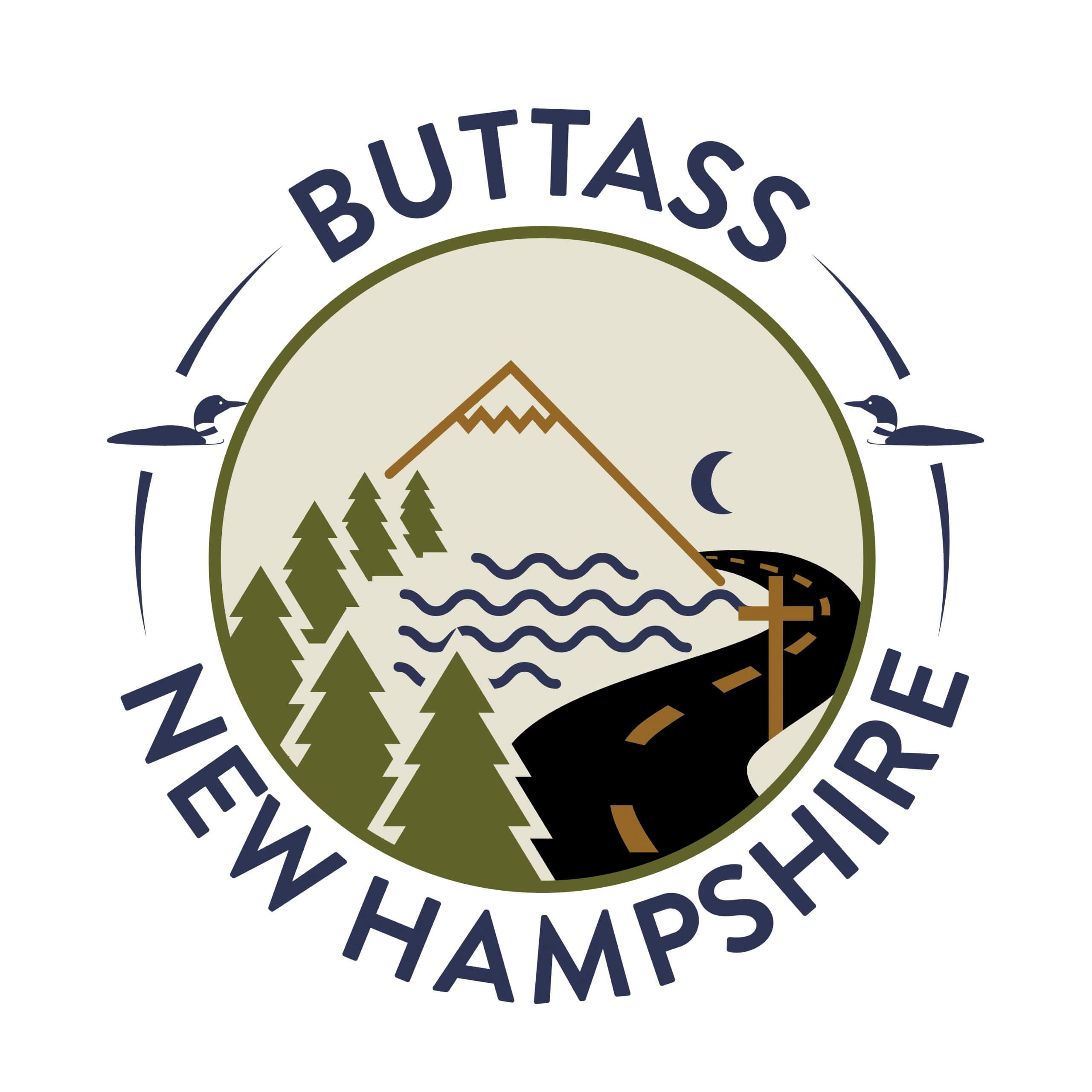 Buttass, New Hampshire is a fiction storytelling podcast about an imaginary town in New Hampshire called Buttass (pronounced bee-YOO-tis, obviously). The podcast is about the mysteriousness of small New England towns: the call of loons at night coming over the lake, strange manifestations of Christianity, driving down twisty mountain roads at night, and sometimes murder. This logo ties together these elements in the kitschy style often seen in logos for campgrounds, outdoors stores, and summer camps.
