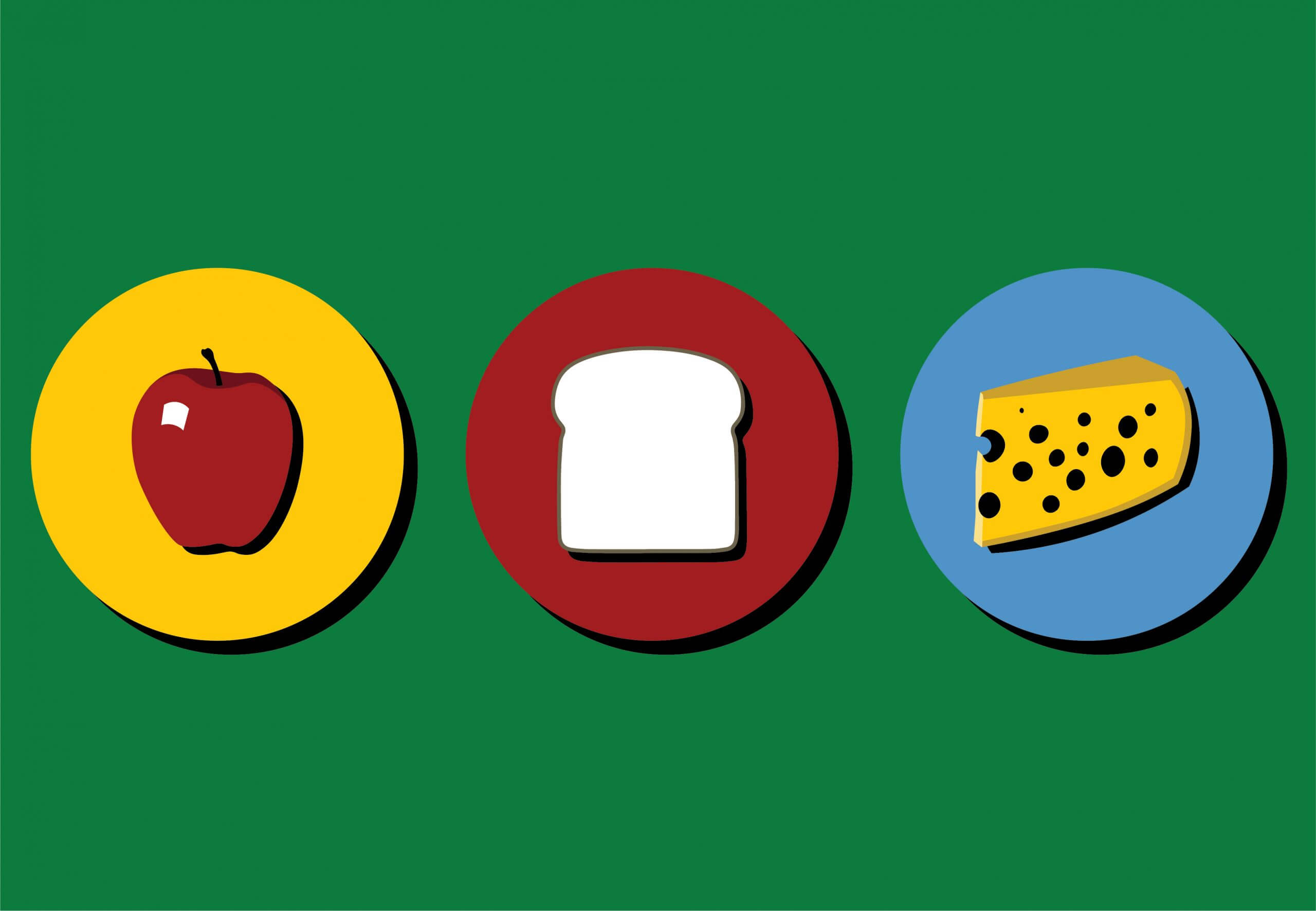 I don’t have many memories of my grandmother’s house, but these three illustrations sum up most of what I do remember. I remember that everything was red, yellow, or blue, except for the plants, which grew in an indoor courtyard with pebbles instead of soil. The best feature of the house was a red pole in the entryway, which perhaps was some sort of structural element, but I just remember it as incredibly fascinating and endlessly fun to try to climb. My grandmother fed us simple snacks: provolone cheese on bread and apple slices, all served on her red, yellow, and blue plates.